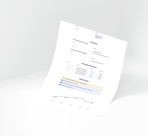 Accès aux rapports complets des véhicules. Plongez dans l'historique des voitures d'occasion pour garantir une transaction transparente et éclairée.